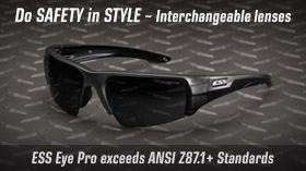 The ESS Crowbar interchangeable-lens sunglass features a frameless bottom lens design that makes the field of view greater than ever. Military-grade polycarbonate lens material delivers broad ballistic protection and crisp optics. Crowbar has a medium fit, is lightweight, balanced and won't interfere with hats, helmets, hearing protection or comms gear.